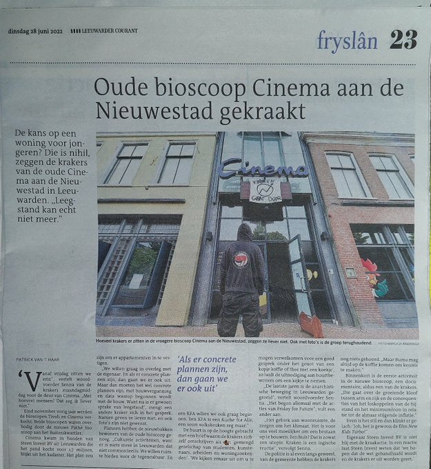 [In kraakpand Kino wordt onregelmatig gekookt en gratis eten verstrekt. Er worden ook wel eens meetings toegankelijk voor geinteresseerden aangekondigd o.a. in de etalage]…